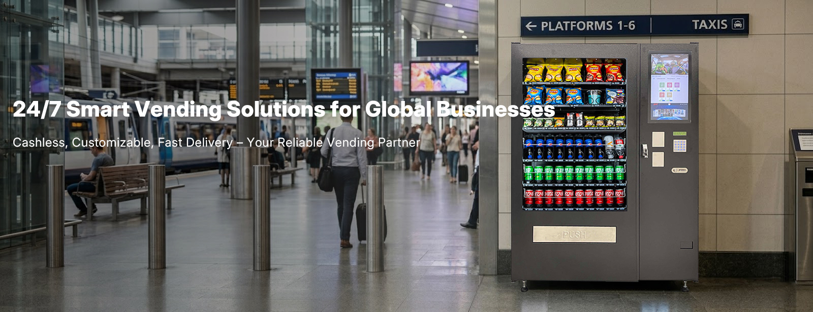 Ofrecemos bebidas frías, comida caliente, casilleros y soluciones inteligentes de venta interactiva.